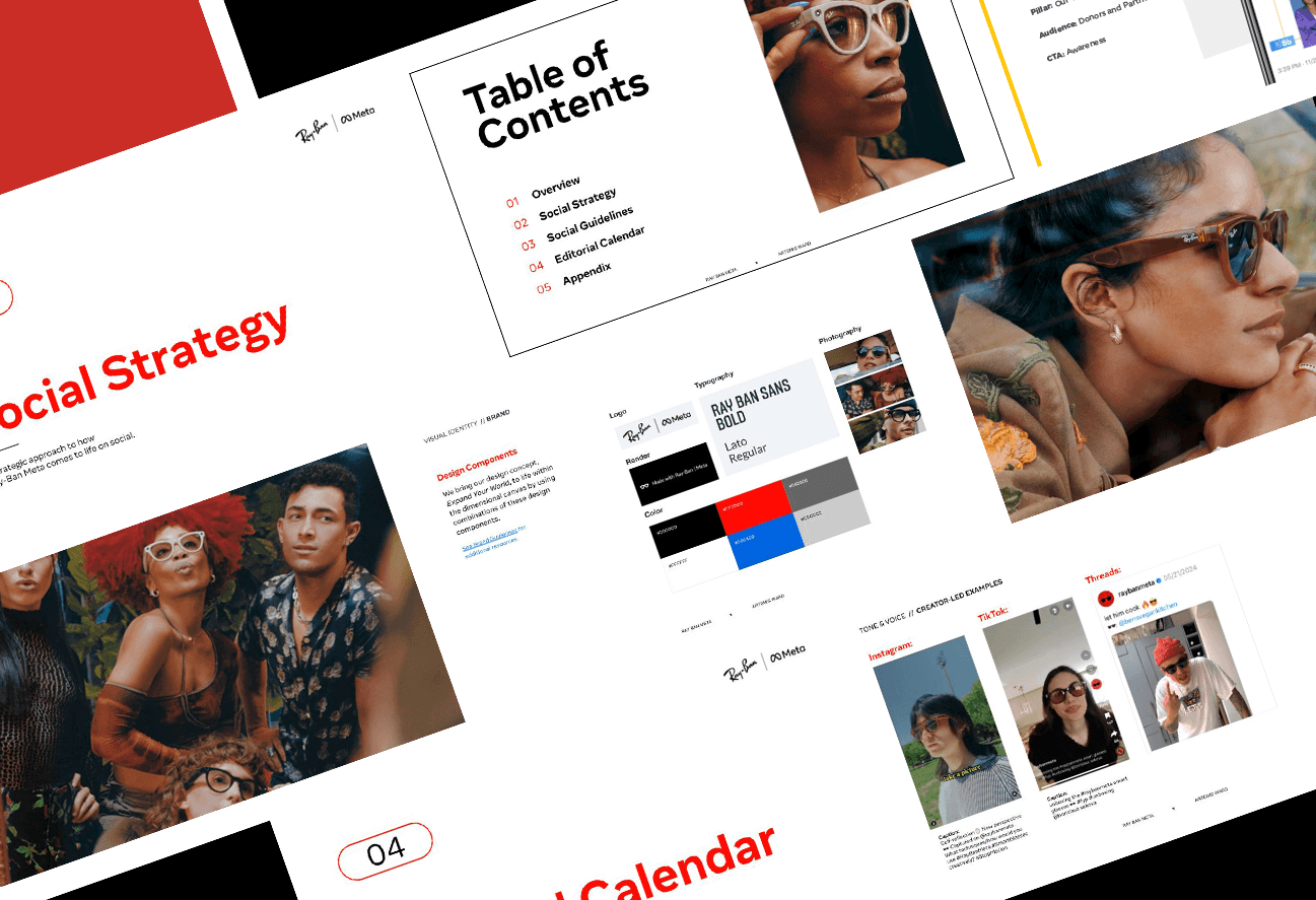 The work included launching YouTube and TikTok from scratch while reimagining Instagram and Threads, balancing two iconic brand voices, and creating a flexible playbook for agency partners across the U.S., U.K., Canada, and Italy. Over 18 months, the work transformed smart glasses from a niche curiosity into an everyday accessory, earning 155M+ views and 545% Instagram growth.