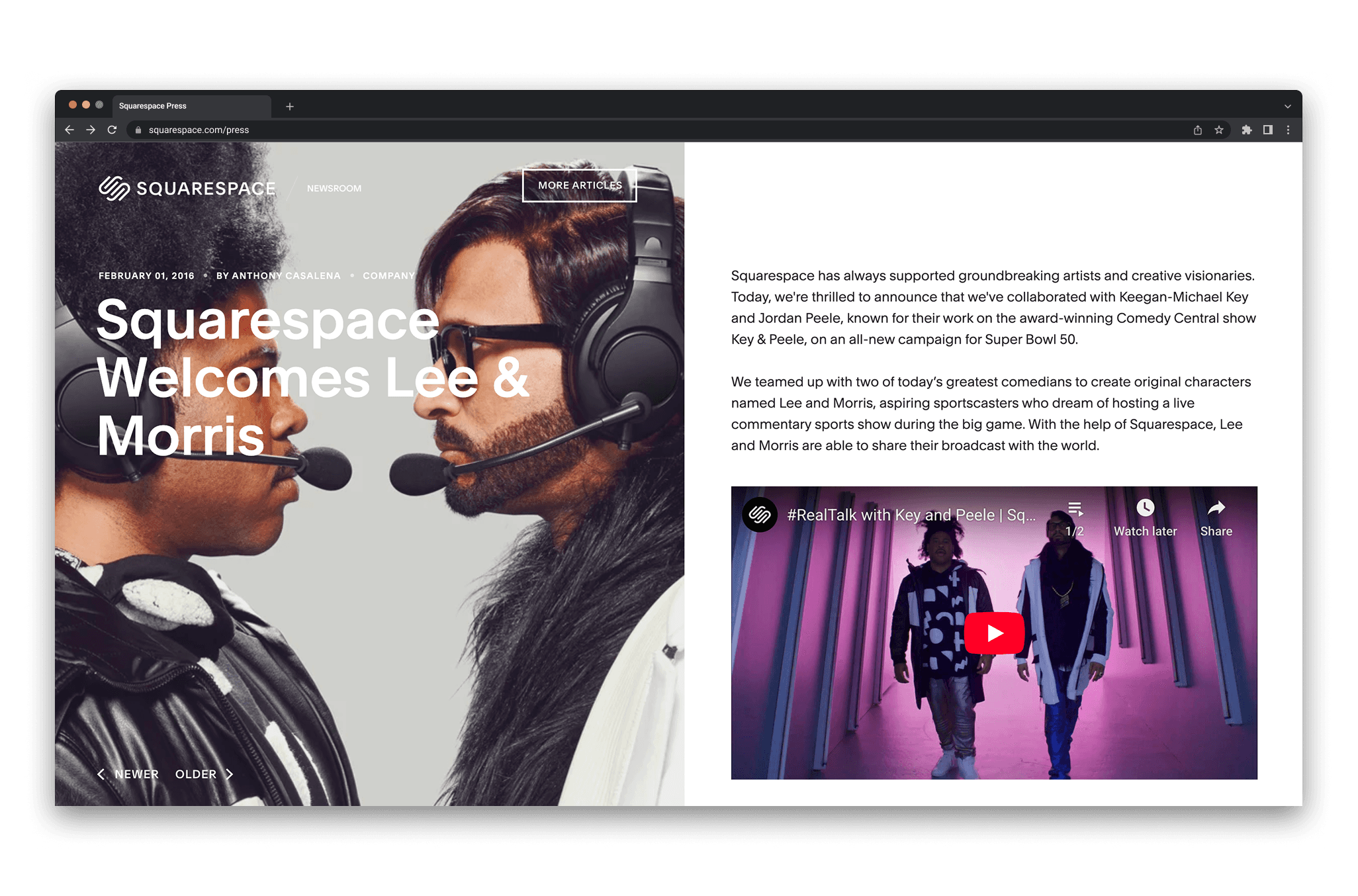 From 2015–2016, I joined the in-house communications team at Squarespace during a period of rapid product expansion and cultural visibility. The company was simultaneously shipping major platform features—domains, commerce analytics, payments, and publishing tools—while scaling its brand presence through high-profile campaigns, partnerships, and awards.